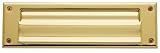 Letter Box Plate Magazine Size - Spring Tension Design WITH COVERED HINGING BACK PLATE, Heavy Duty Wrought Brass Size: Overall measurements: 10" x 3". Inside opening: 7.5" x 2". Features: Especially designed for use on exposed doors to prevent wind from driving rain and snow through the slot. The flap is furnished with a spring to keep it tightly closed at all times. Hinging back plate provides additional privacy as well as decorative appearance. Not suitable for vertical installation (see Baldwin item No. 0012). Sleeve: Available for hollow core doors. See Baldwin item No. 0050 (purchased separately). Packed: One complete set in a box with wood screws. Note: For same item without hinging back plate please see Baldwin item No. 0015.